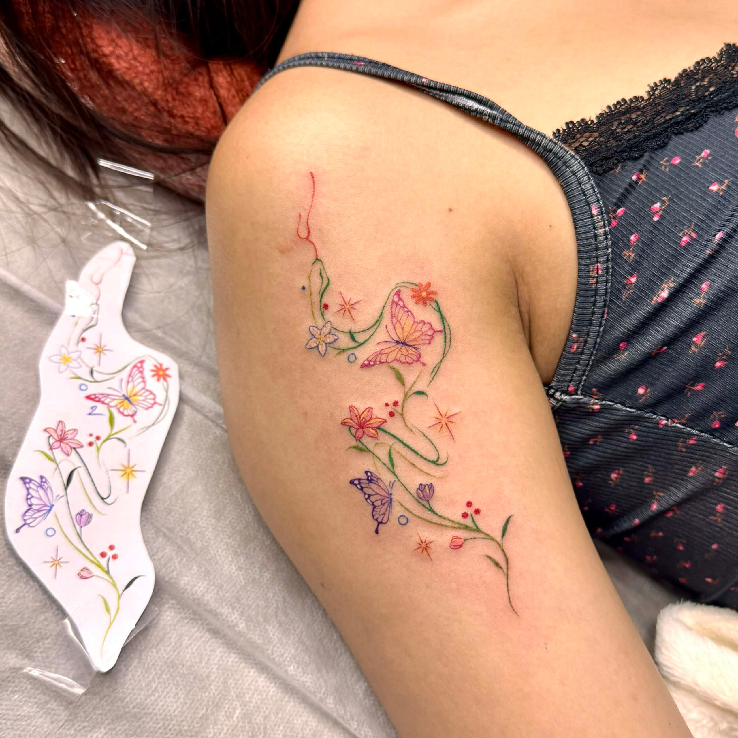 Miaa is a Chiang Mai local tattoo artist specialising in minimal tattoos, fine line work, and delicate colour pieces. Although she is relatively new to tattooing with just a handful of years experience, her work shows a level of natural talent and artistic sensitivity that is rarely seen so early in an artist’s career.